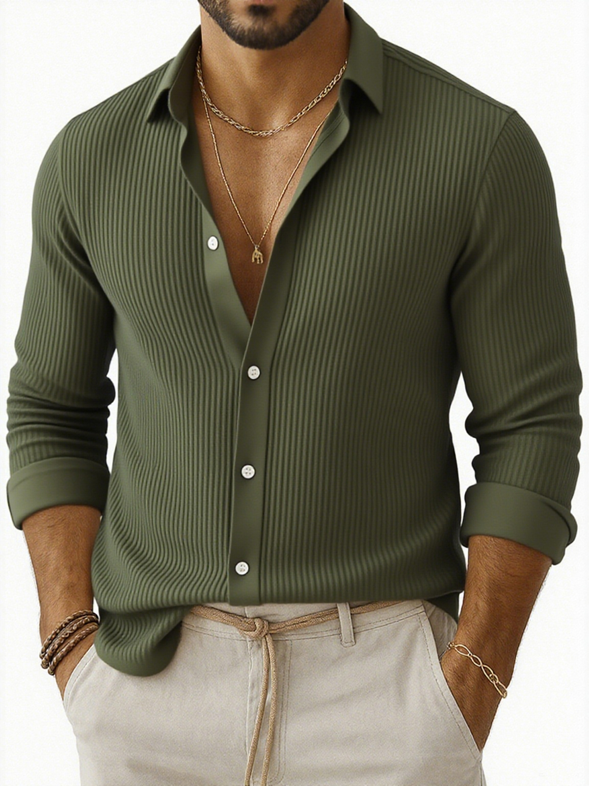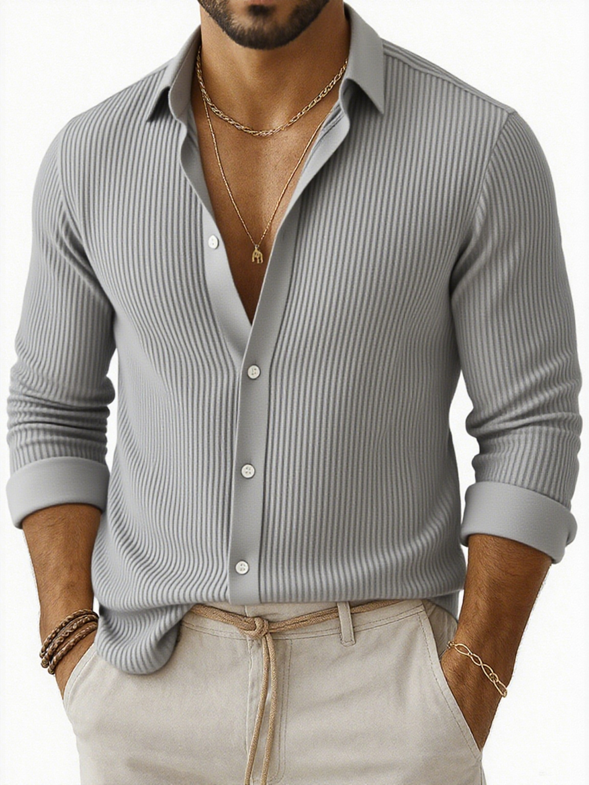 Herren-Freizeithemd mit Achselstreifen und langen Ärmeln