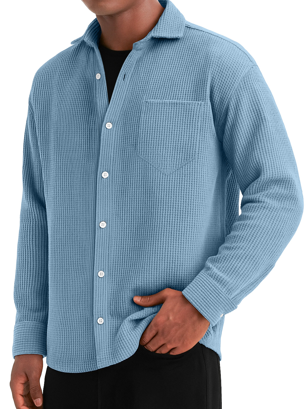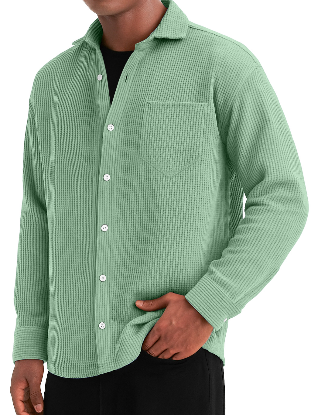 Herren Alltags Waffel Tasche Lässiges Einfarbiges Langarmhemd