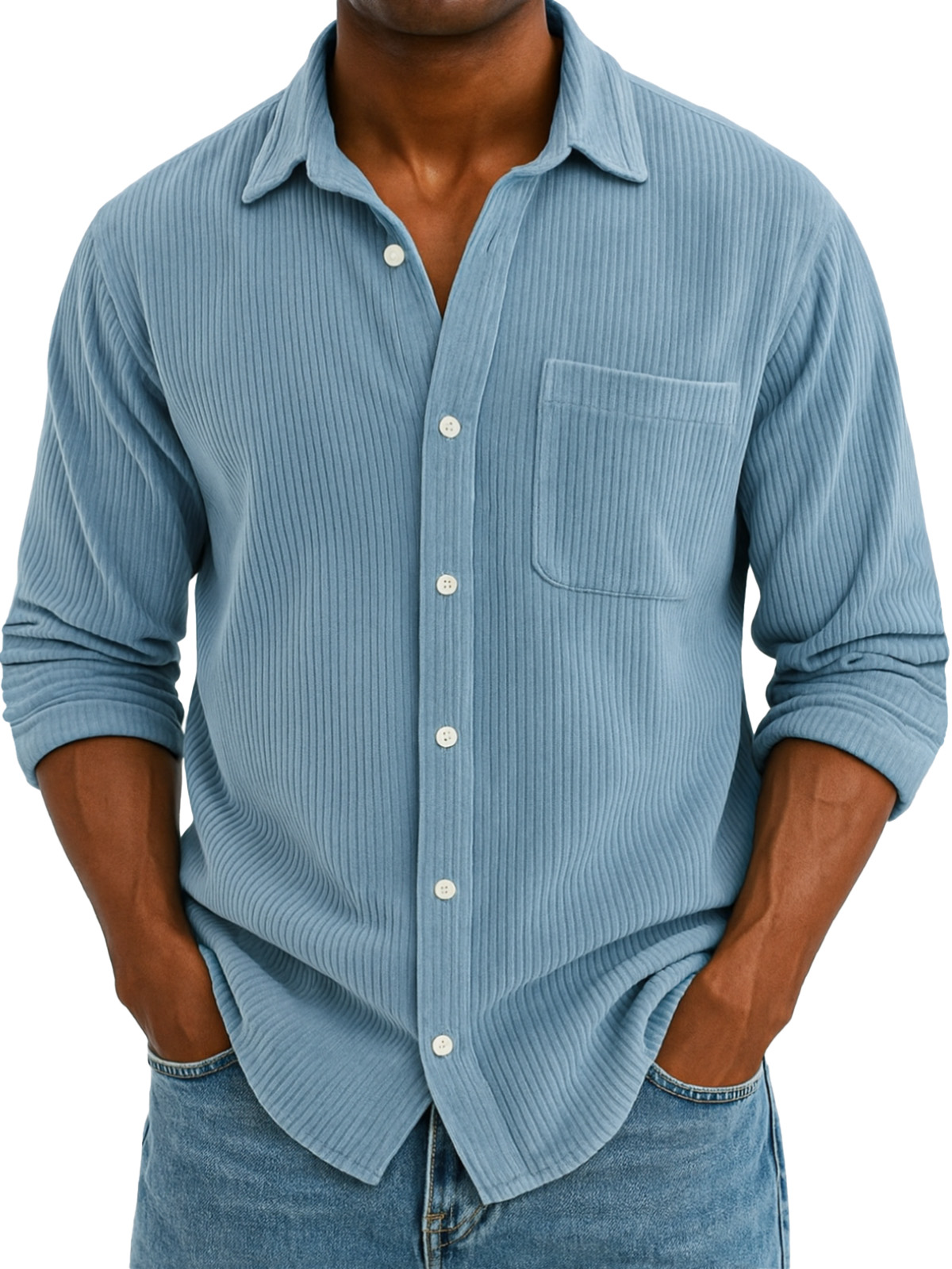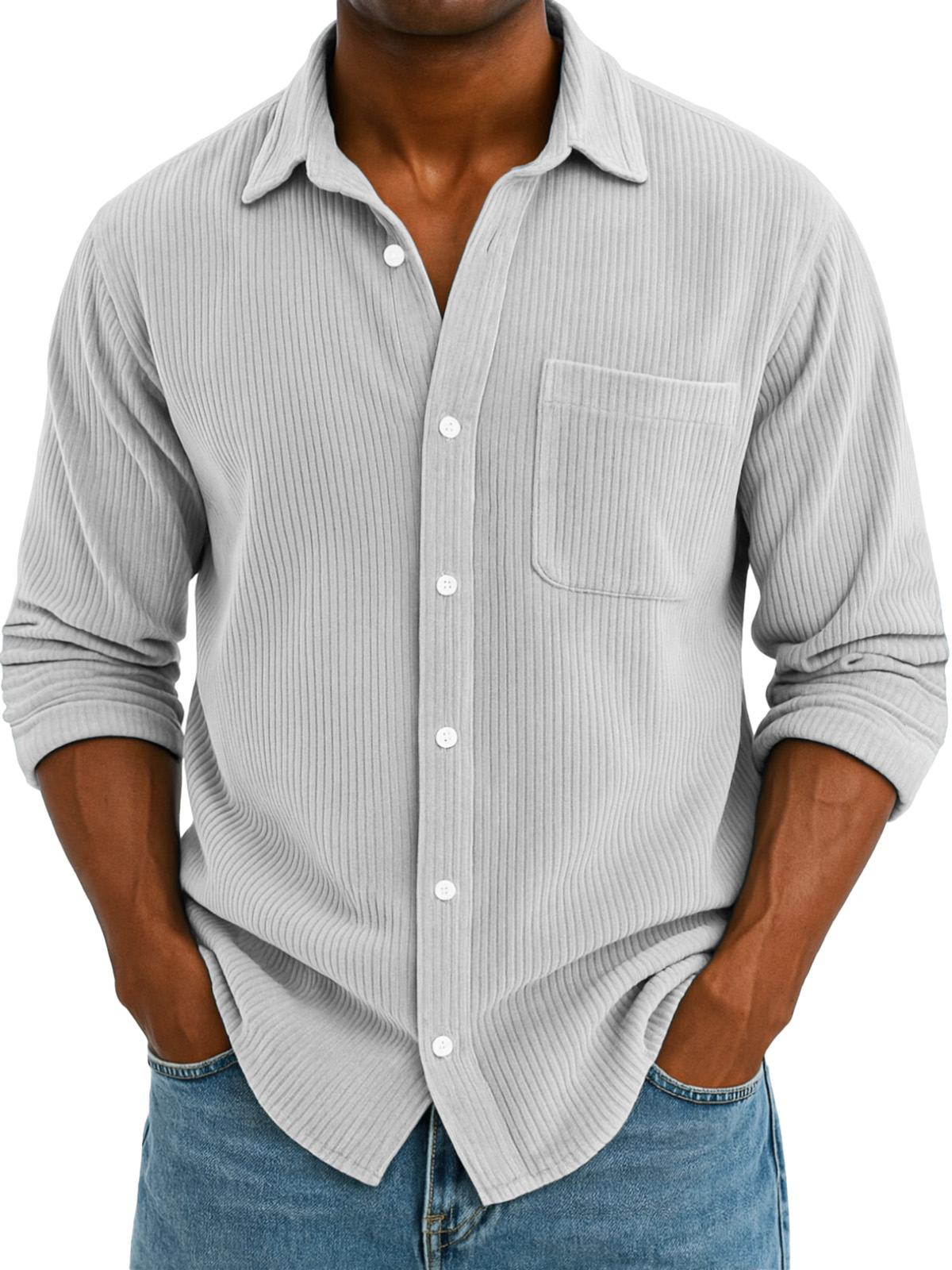 Herren Freizeit Einfarbige Corduroy Weitkragen Langarmhemd