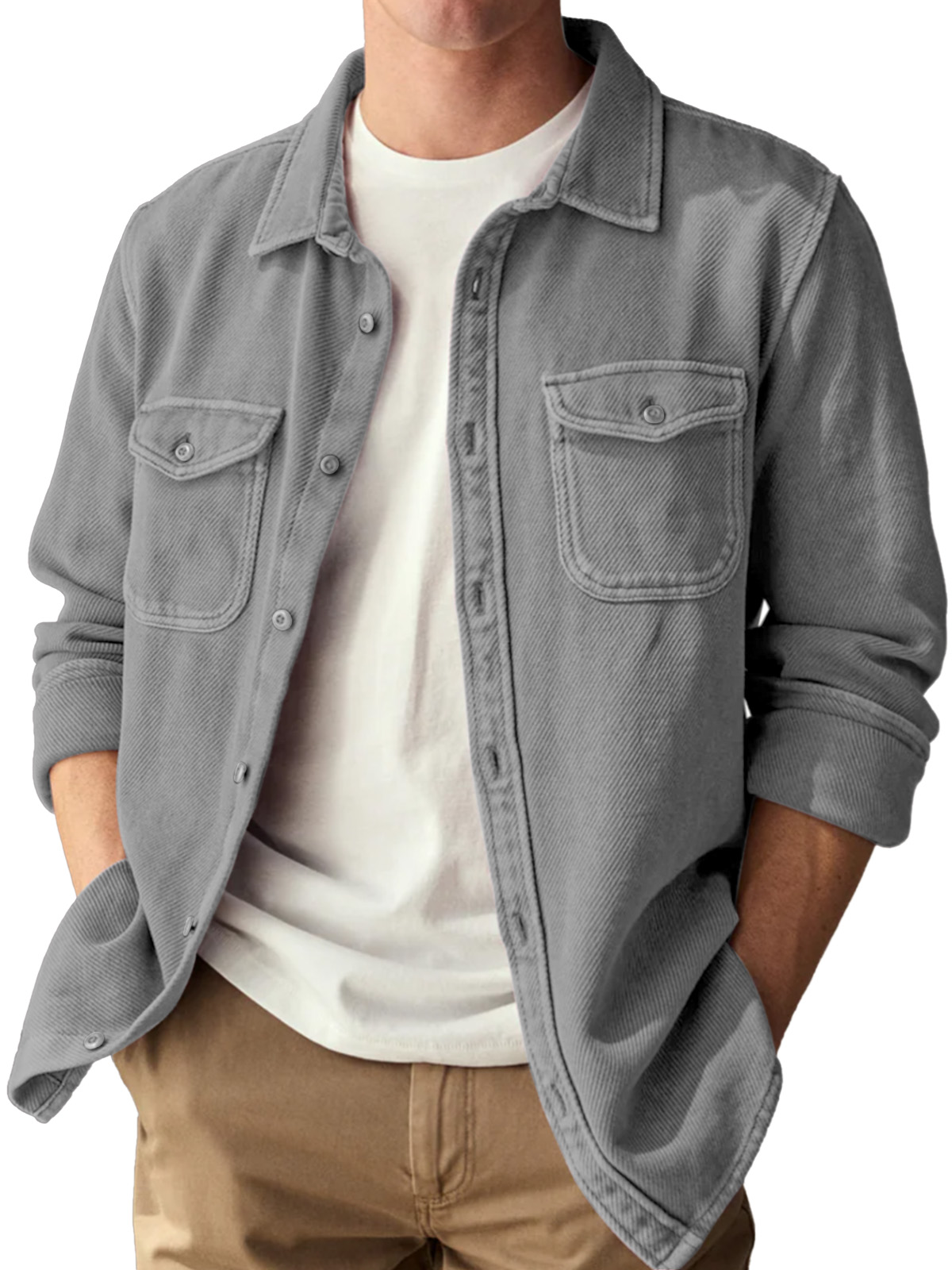 Basic Vintage Doppelter Taschen Revers Knopf-Down Langarmhemd