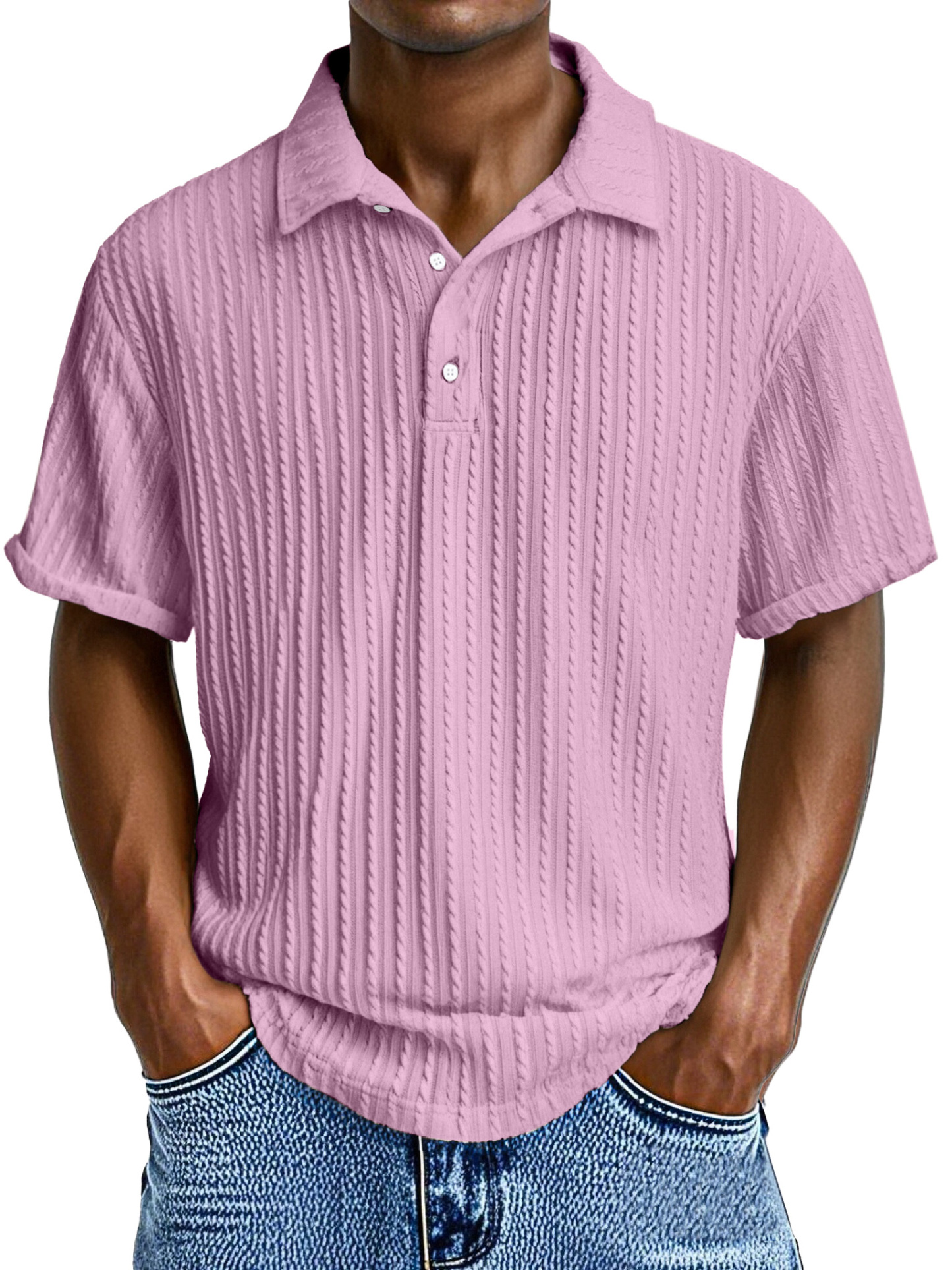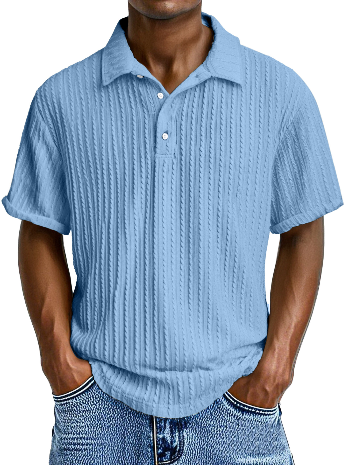 Herren Bequeme Lockere Textur Revers Knopf Kurzarm Polohemd