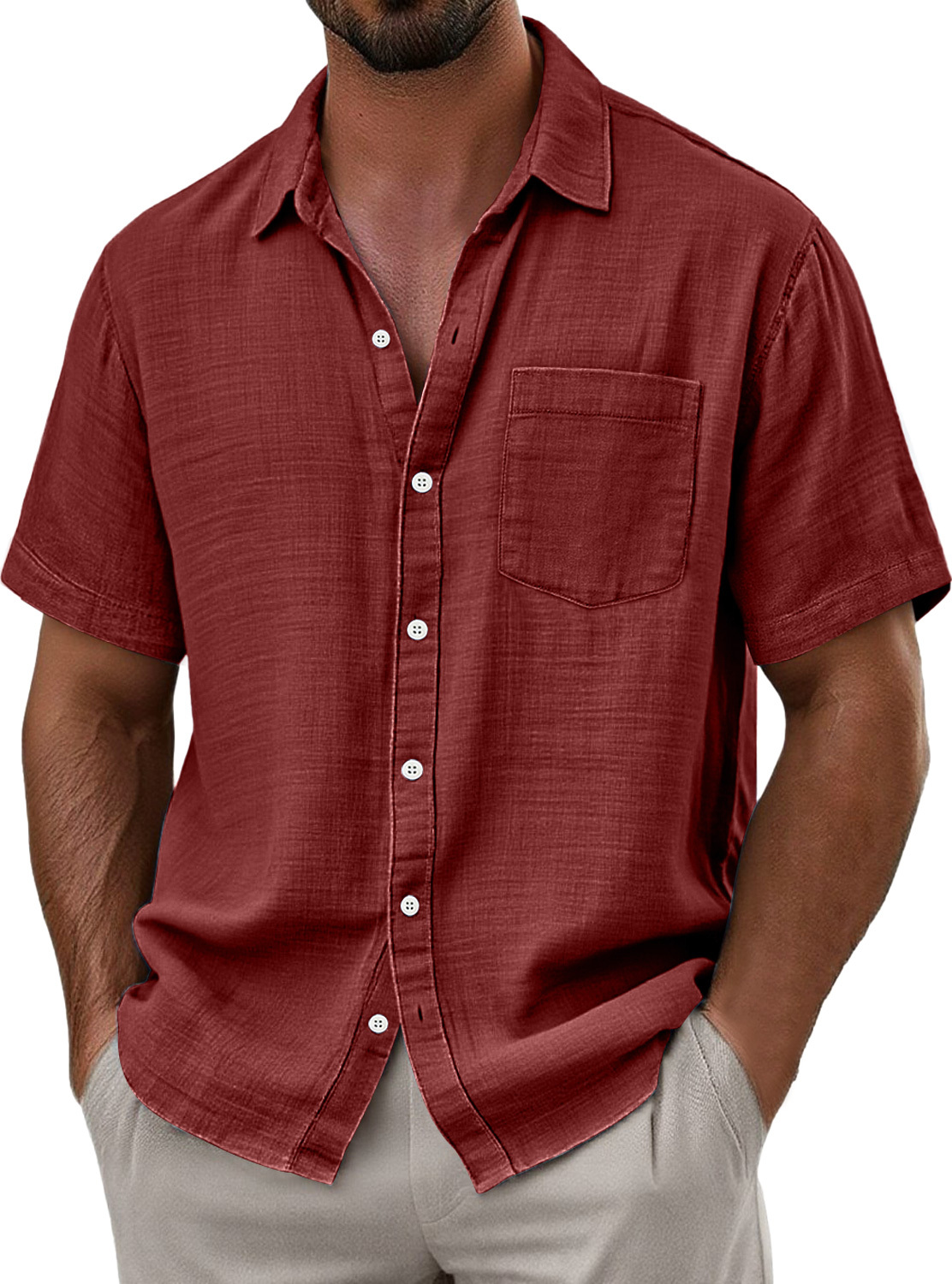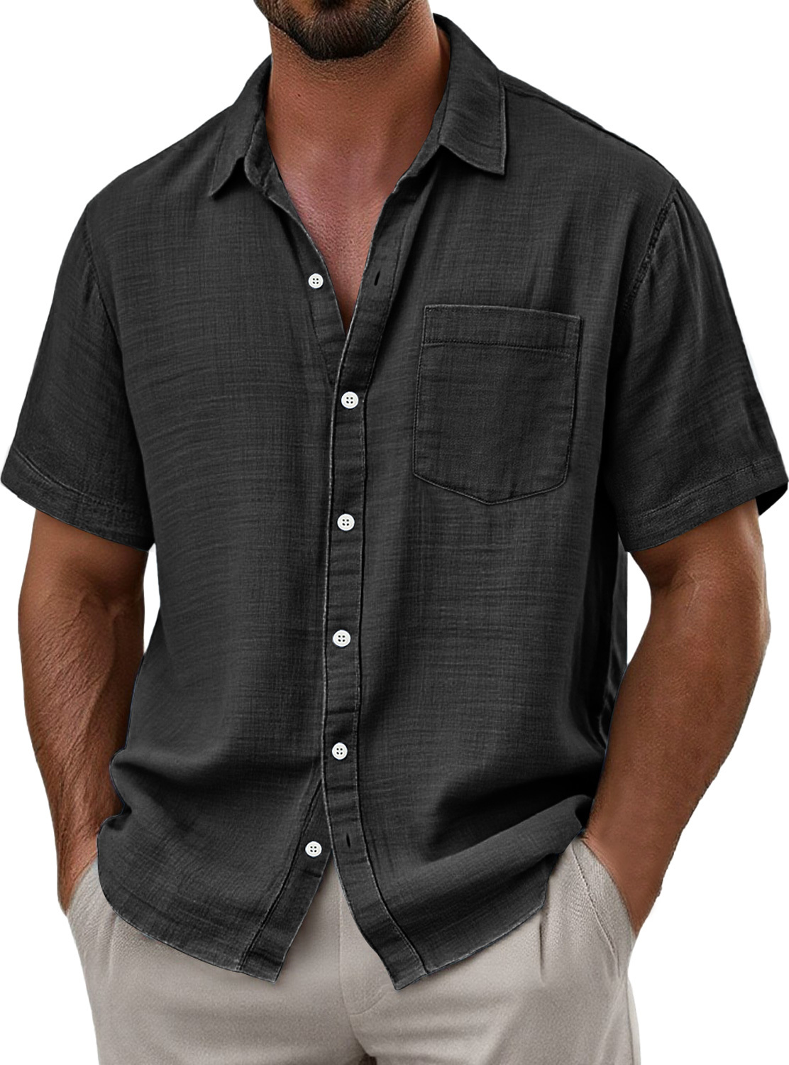 Herren Tägliches Imitat Leinen Lässiges Taschen Bequemes Einfarbiges Kurzarmhemd