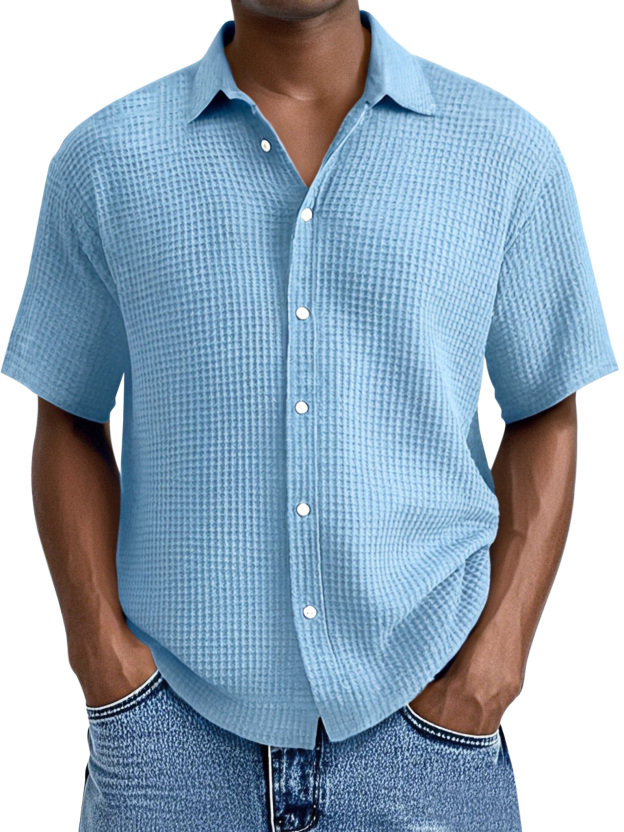 Herren Alltags Locker Waffelstruktur Revers Knopf-down Kurzarmhemd