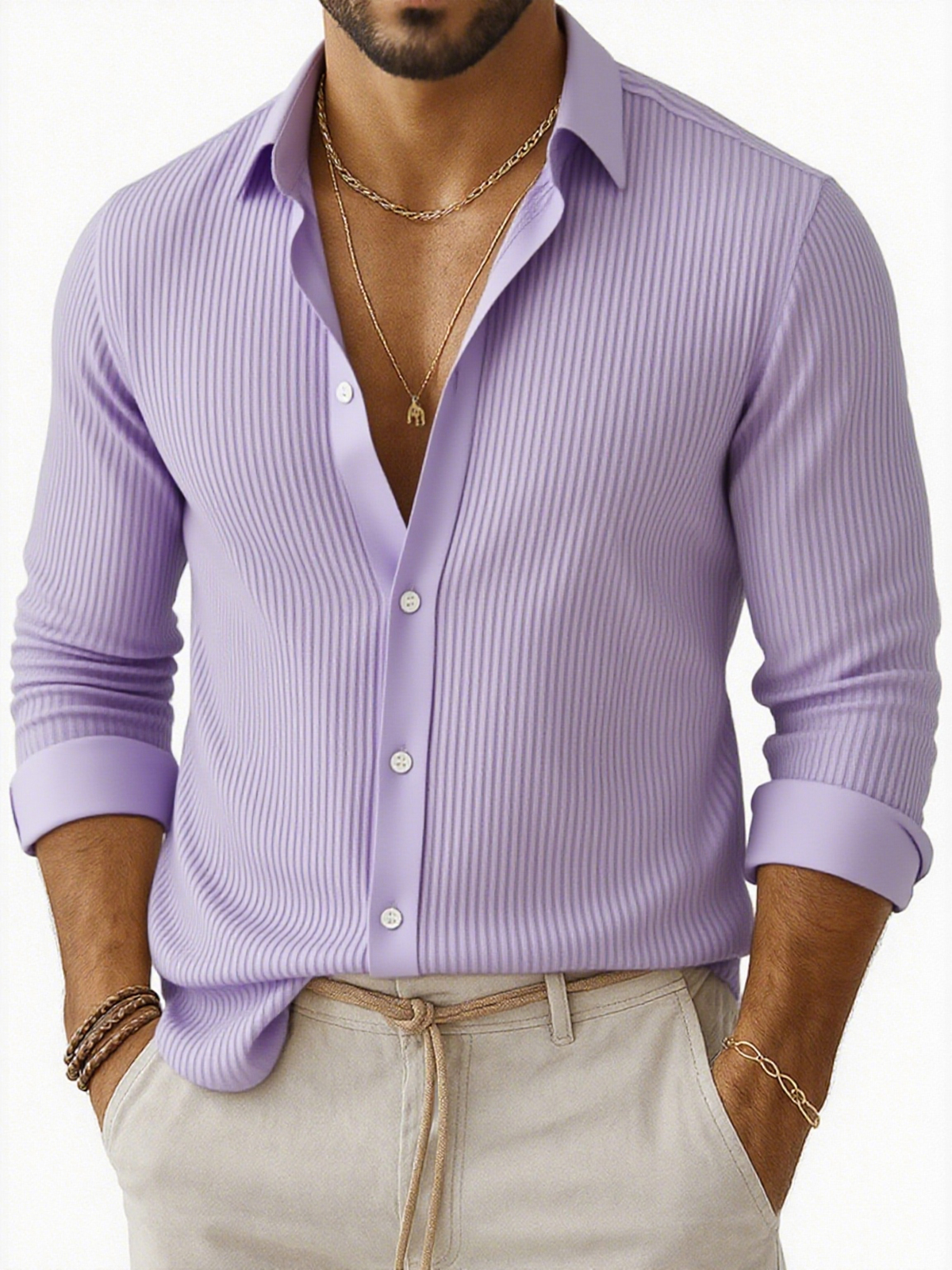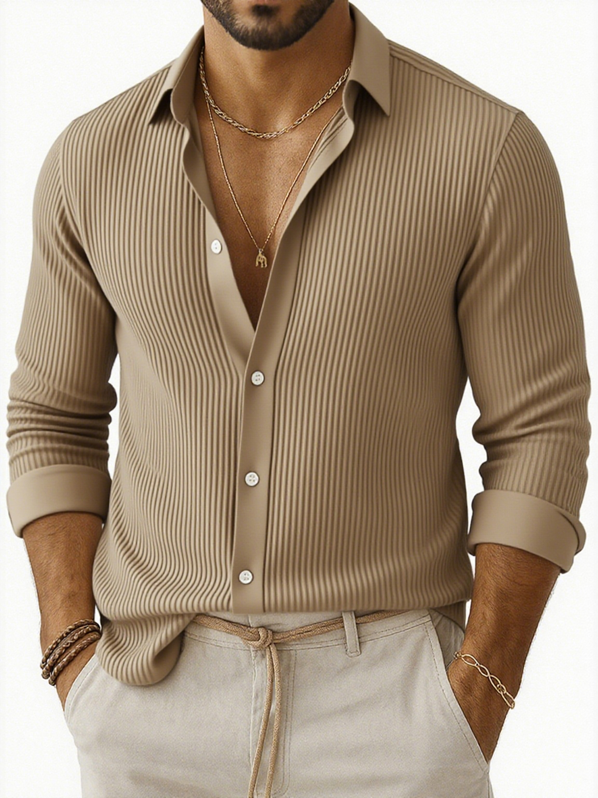 Herren-Freizeithemd mit Achselstreifen und langen Ärmeln