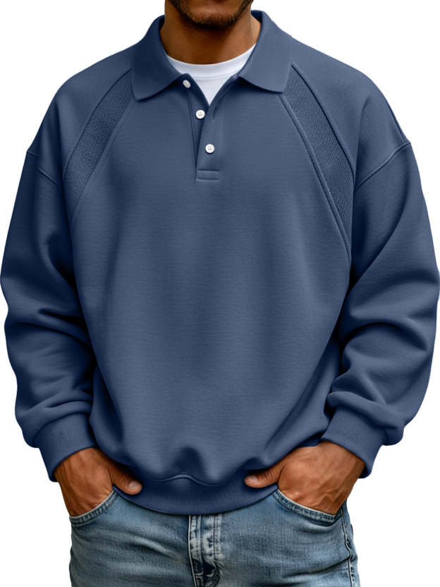Neue Quelle | Herren Einfaches Patchwork Revers Knopf Langarm Sweatshirt
