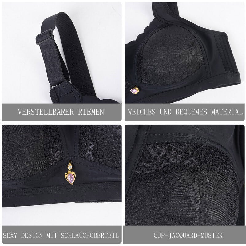 - Reduziert seitliches Brustfett durch Zentralisierung und vollständige Abdeckung
